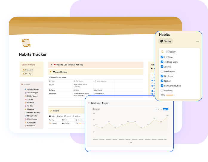 Life can feel like too much at once. Our system breaks it all down so you can move forward one task, one habit, one win at a time.