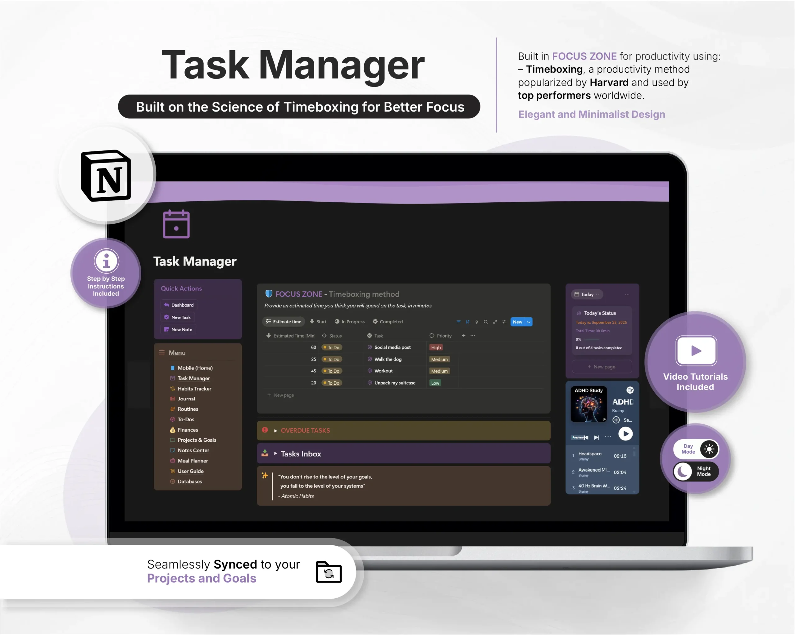 Built on the proven Timeboxing Method, this ADHD planner helps you visualize tasks, manage time blocks, and track your progress effortlessly.